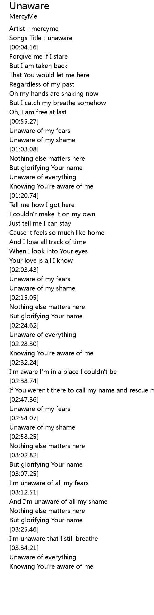 Unaware Lyrics