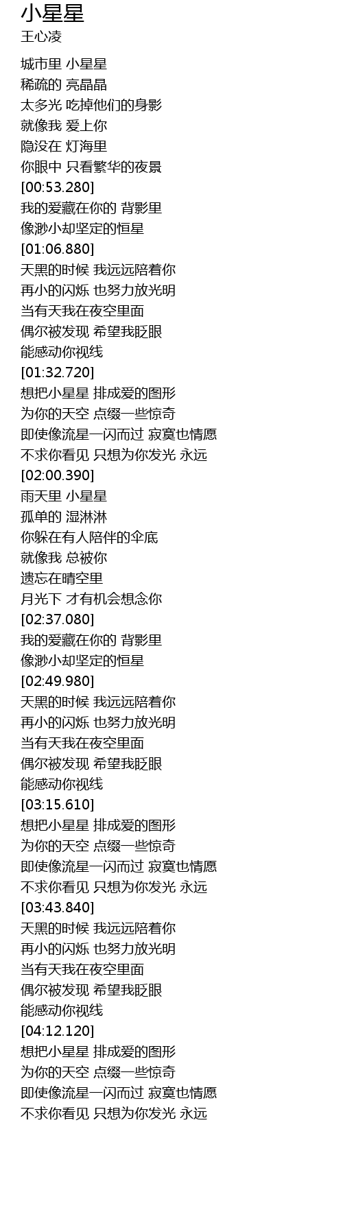 | [02:11.430] | yǔ tiān lǐ xiǎo xīng xīng |