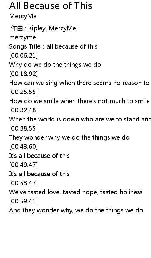 | [00:00.00] | 作曲 : Kipley, MercyMe |