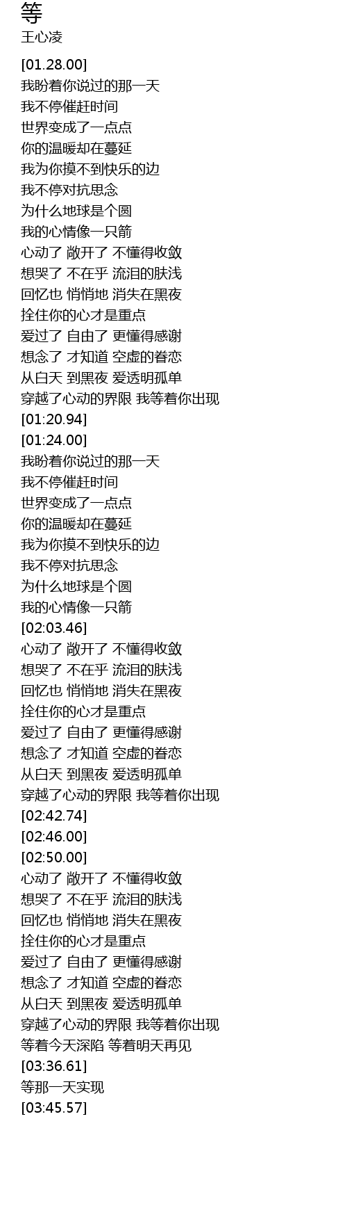 | [01:32.58] | 我盼着你说过的那一天 |