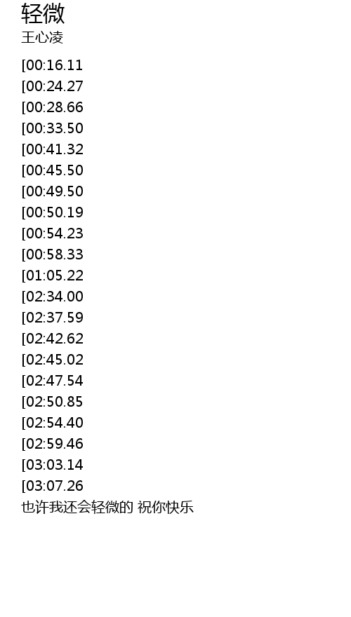 | [03:49.41][03:03.14][01:34.88] | qīng wēi de tí xǐng zhe |
