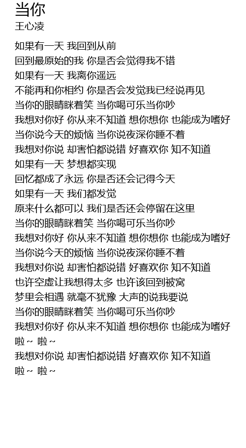 | [00:39.910] | 当你的眼睛眯着笑 当你喝可乐当你吵 |