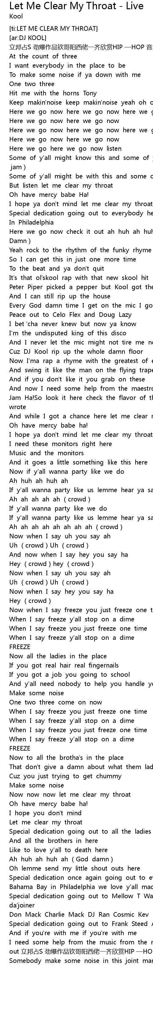 | [01:31.08] | Cuz DJ Kool rip up the whole damn floor |