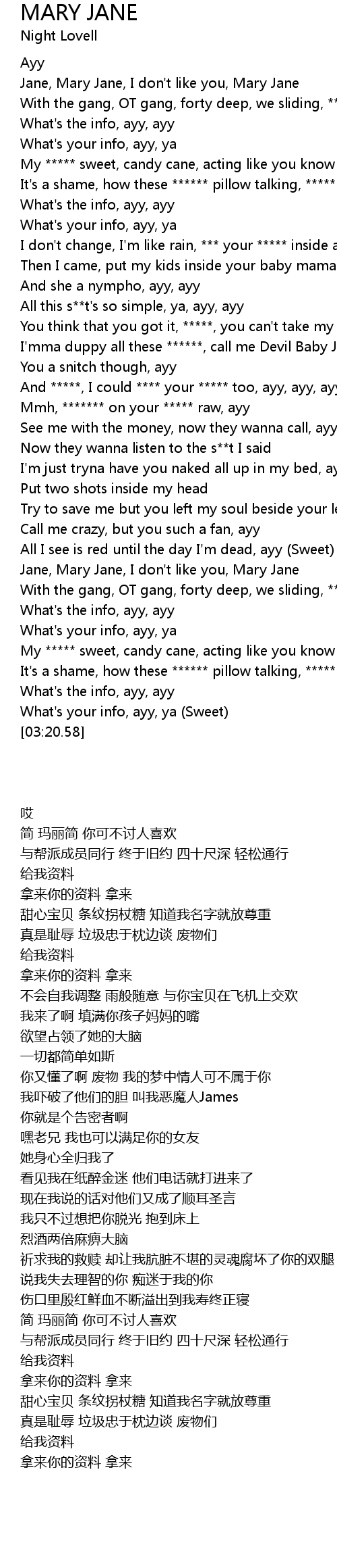Jane, Mary Jane, I don't like you, Mary Jane |
