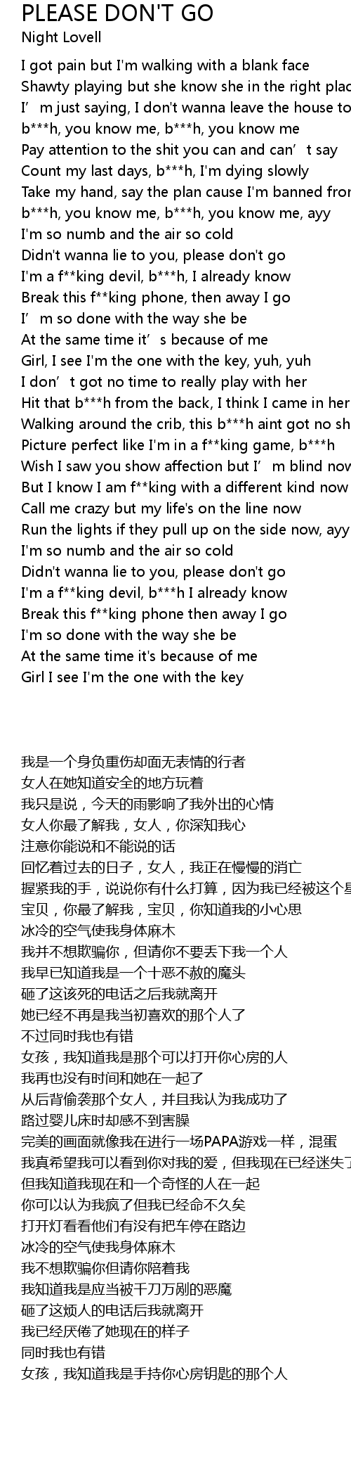 | [00:45.38] | Didn't wanna lie to you, please don't go |