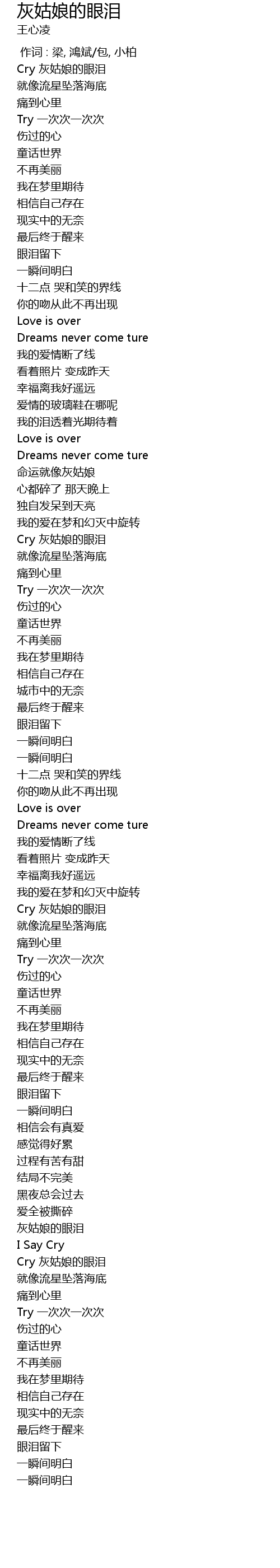 | [03:16.870] | Cry 灰姑娘的眼泪 |