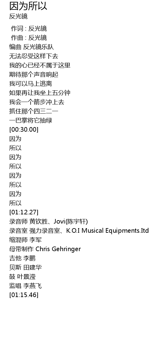 | [01:15.15] | 录音室 强力录音室、K.O.I Musical Equipments.Itd |
