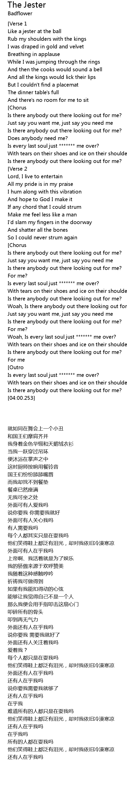 [03:04.079] Woah, Is there anybody out there looking out for me?