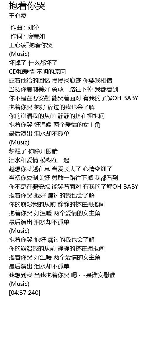 | [03:37.300] | 抱着你哭 抱好 痛过的我也会了解 |