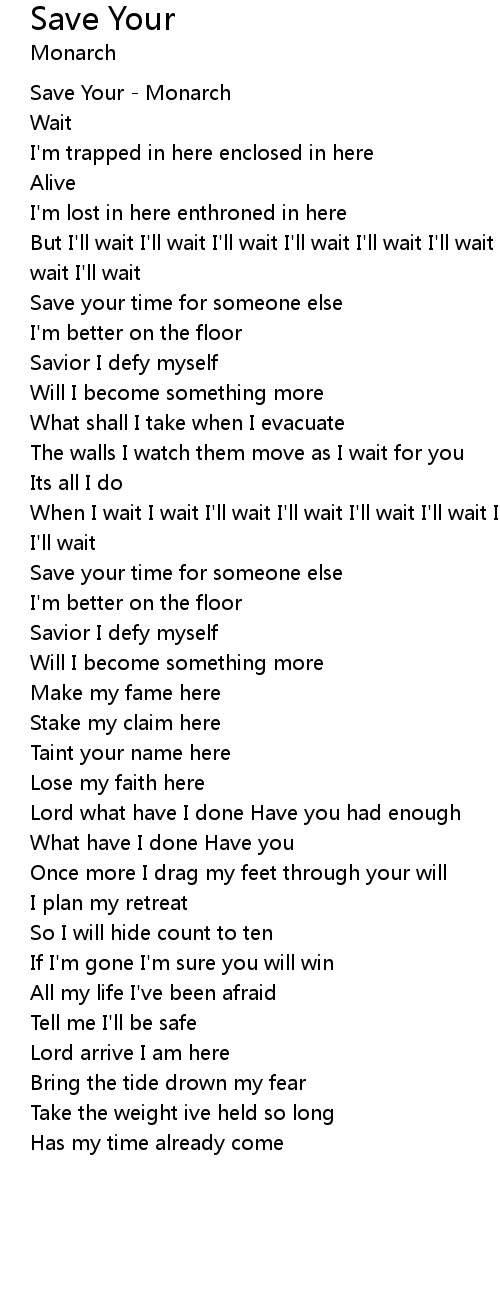 | [02:19.460] | When I wait I wait I'll wait I'll wait I'll wait I'll wait I'll wait I'll wait |