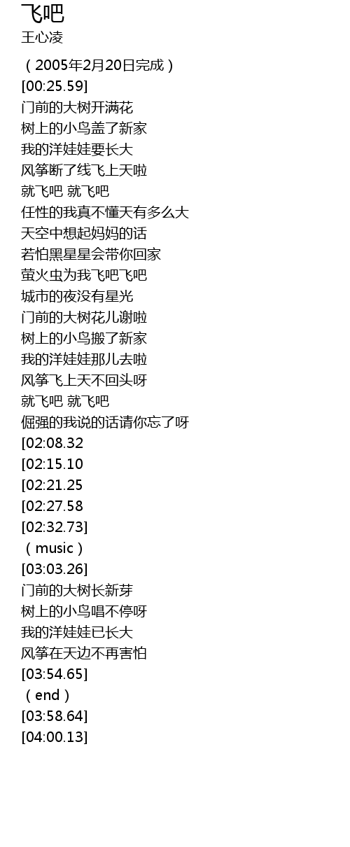| [01:55.31] | 就飞吧 就飞吧 |