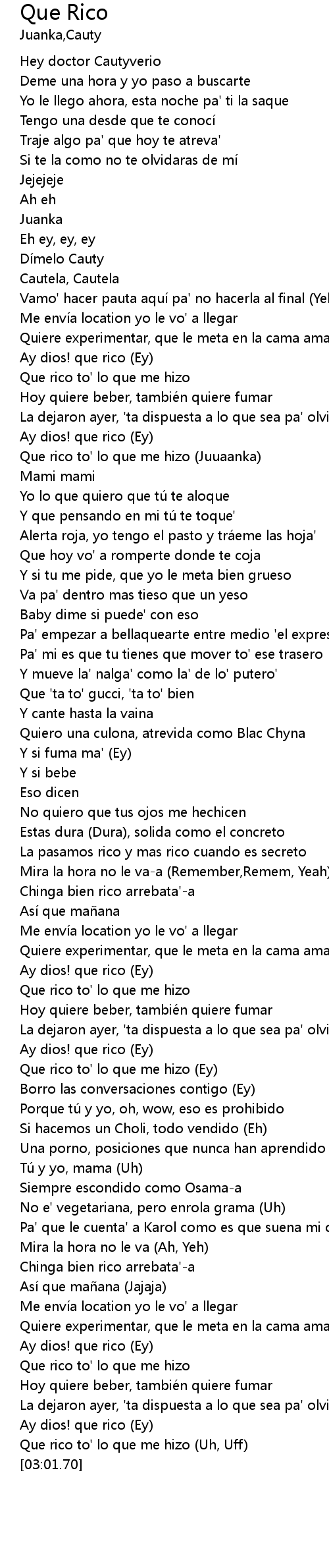 | [00:51.46] | Que rico to' lo que me hizo (Juuaanka) |