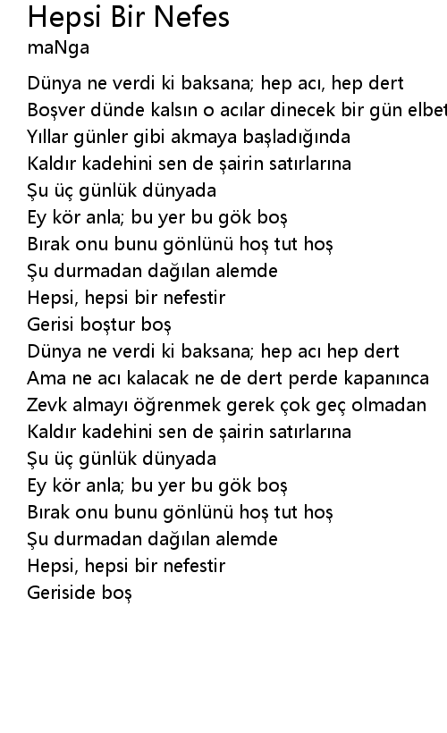 | Song | Hepsi Bir Nefes |