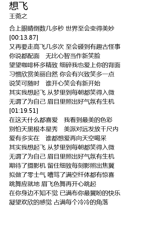 | [02:04.75] | 其实我想起飞 从梦里到每朝都笑得入微 |