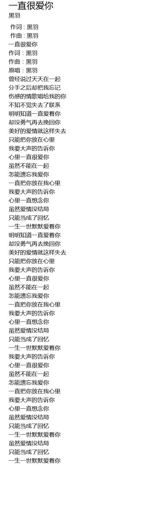 | [00:00.000] | 作词 : 黑羽 |