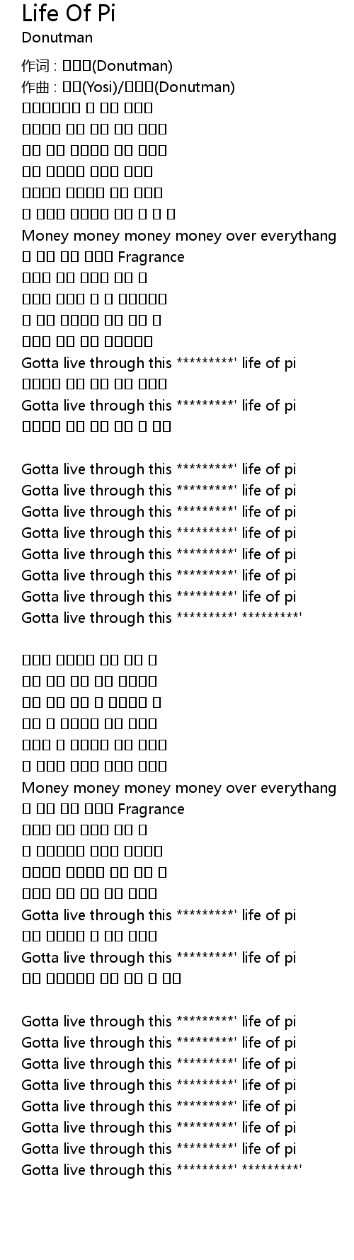| Gotta live through this *********' life of pi | |