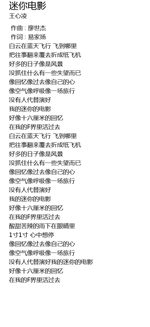 | [03:35.52] | 没有人代替演好我的迷你的电影 |