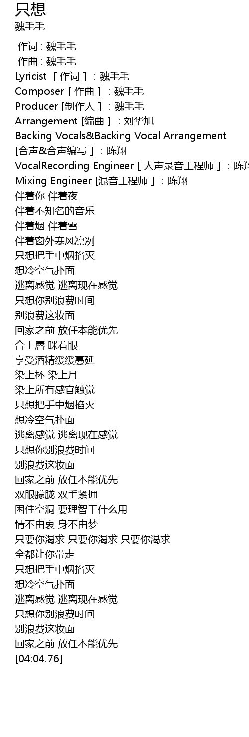 | [00:00.00] | Lyricist [作词]:魏毛毛 |