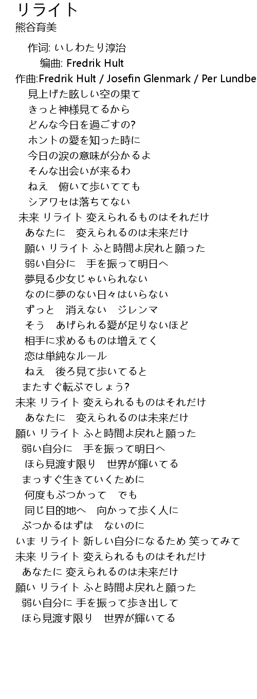 | [02:44.37] | いま リライト 新しい自分になるため 笑ってみて |