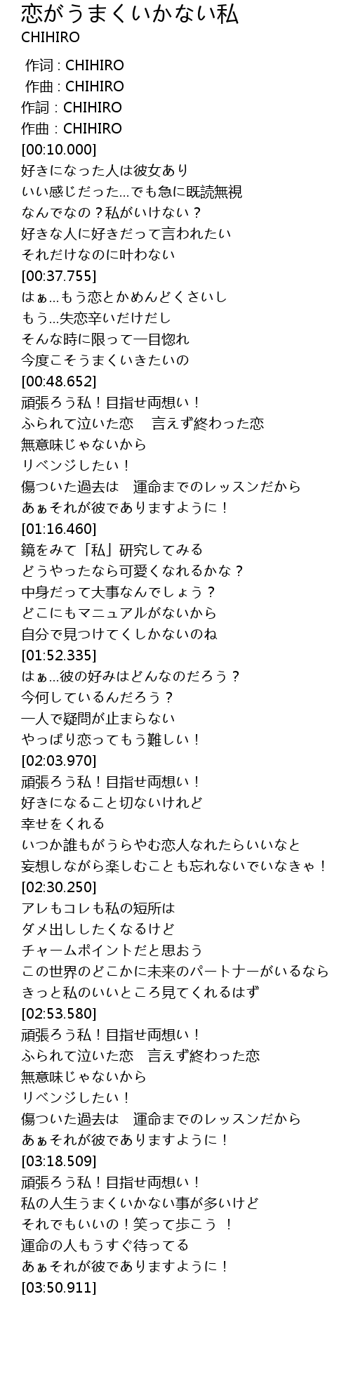 | [00:06.349] | 作詞:CHIHIRO |