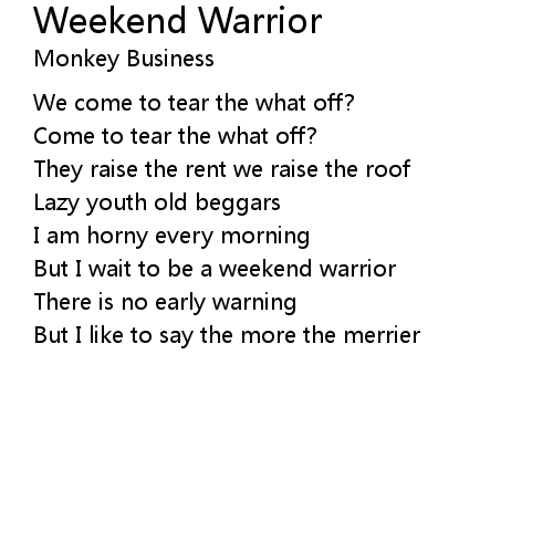 | Song | Weekend Warrior |