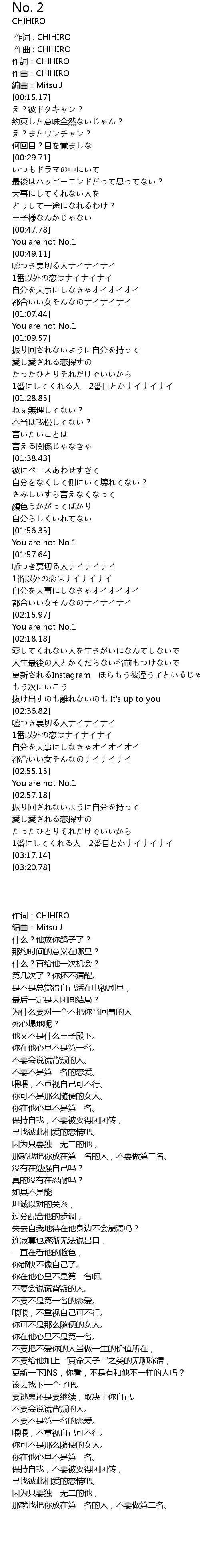 | [02:55.17] | You are not No.1 |