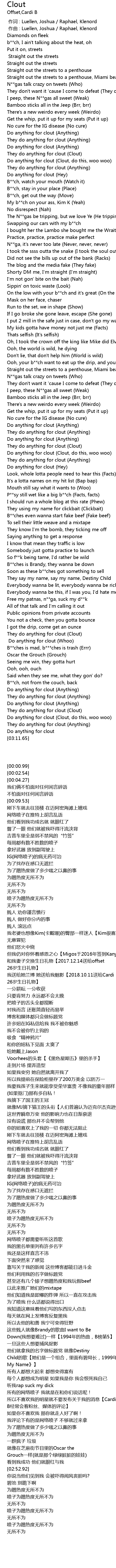 | [01:56.26] | Do anything for clout (Clout, do this, woo woo) |