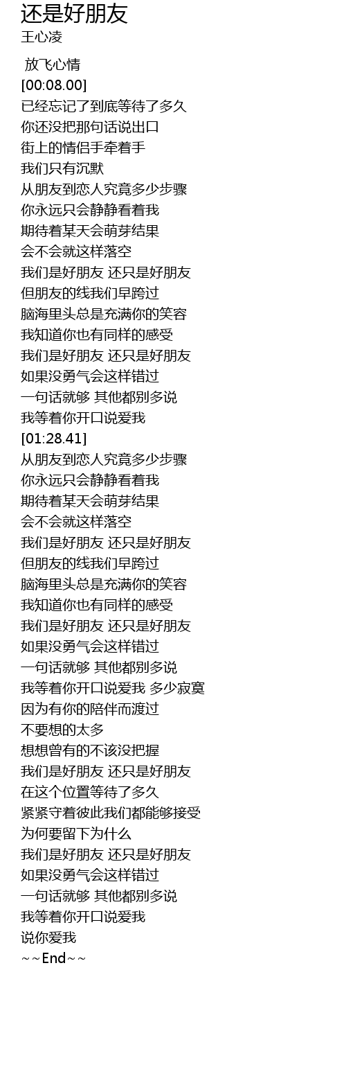 | [03:00.63] | 我们是好朋友 还只是好朋友 |