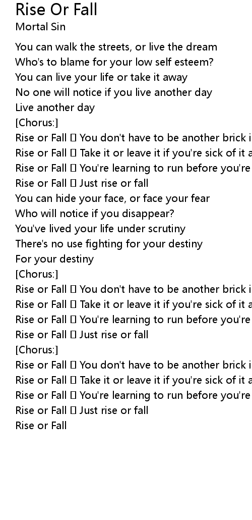 | Rise or Fall Take it or leave it if you're sick of it all | |