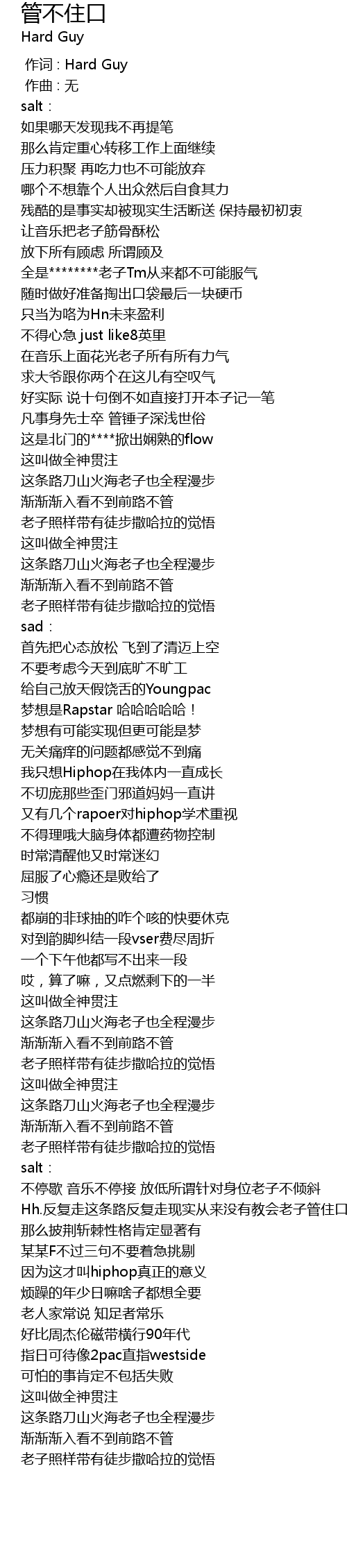 | [00:57.698] | 这是北门的****掀出娴熟的flow |