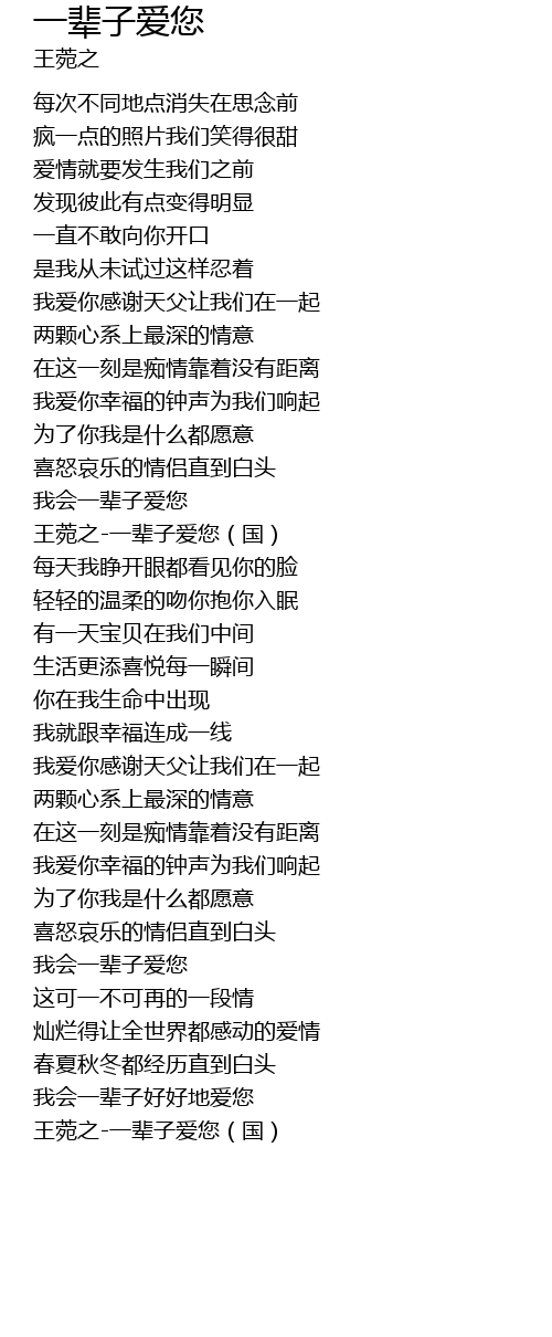 | wǒ huì yī bèi zi hǎo hǎo dì ài nín | |