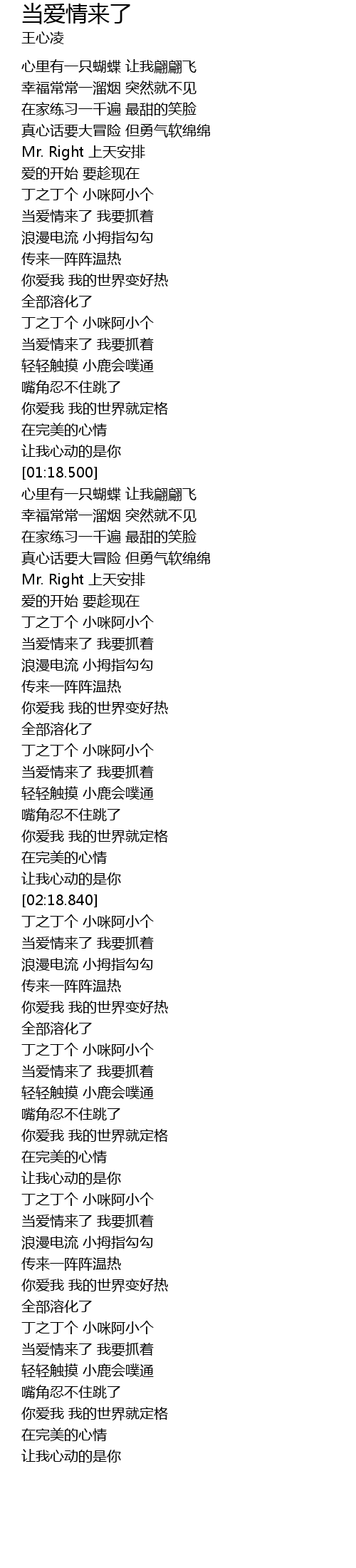 | [01:37.259] | Mr. Right shàng tiān ān pái |