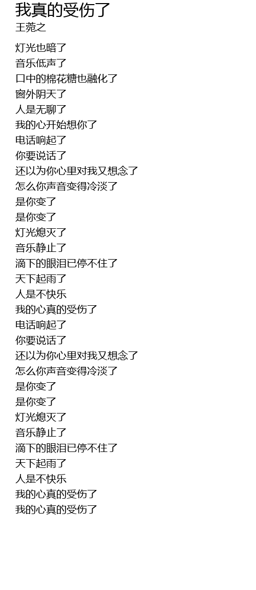 | [01:30.789] | wǒ de xīn zhēn de shòu shāng le |