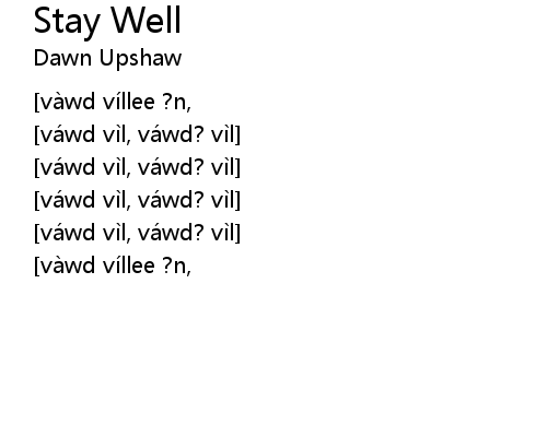 | Song | Stay Well |