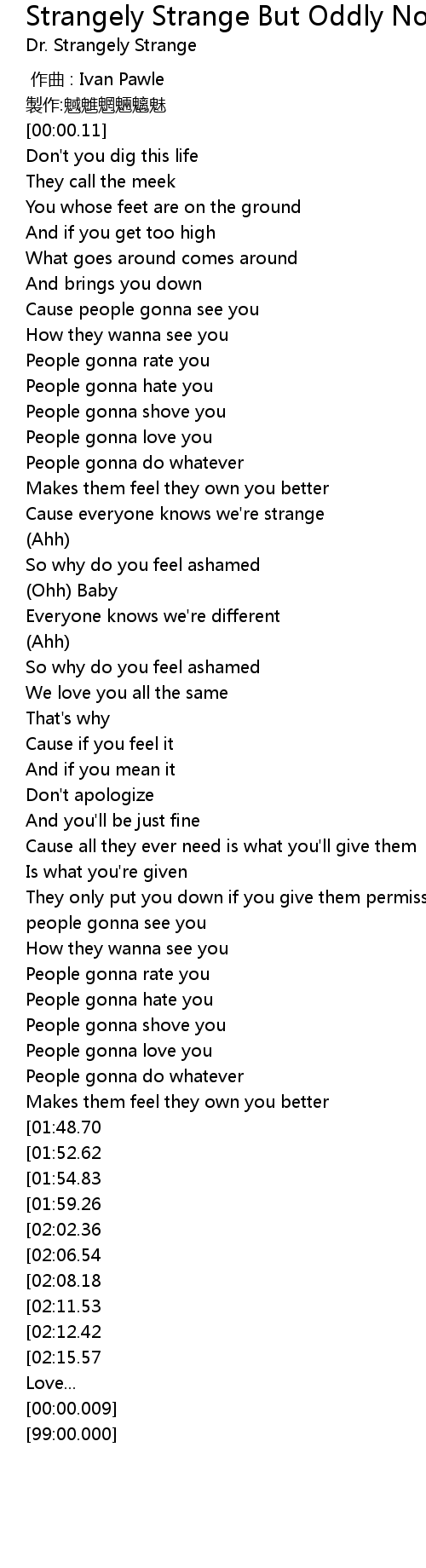 | [02:54.87][01:48.70] | everyone knows we're strange |