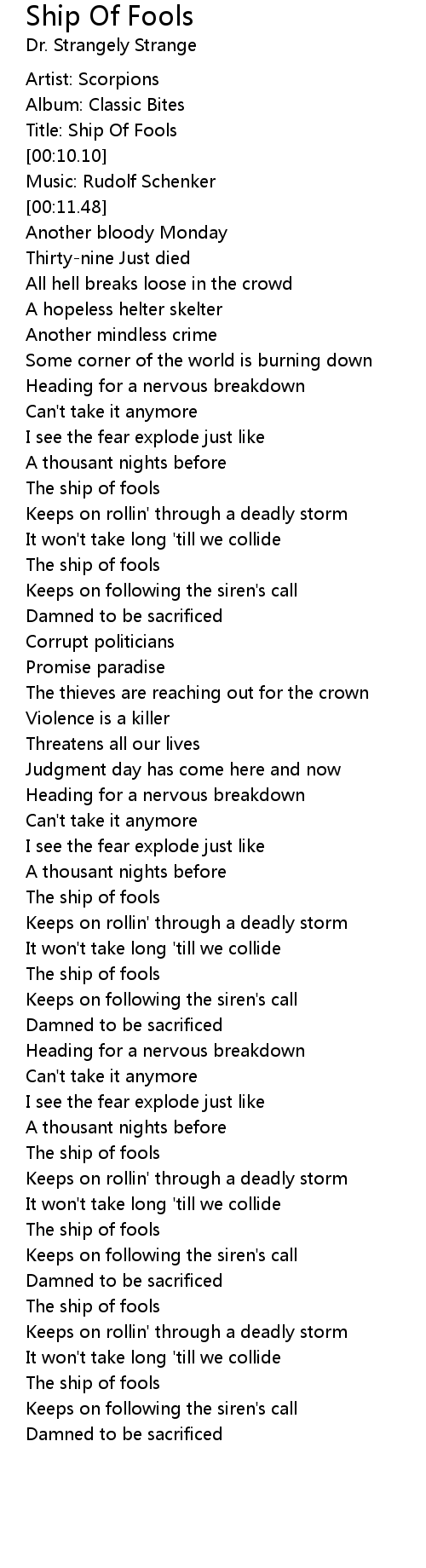 [00:09.61] Title: Ship Of Fools