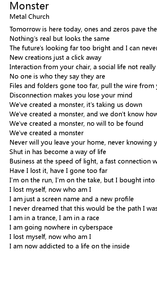 We've created a monster, no will to be found |