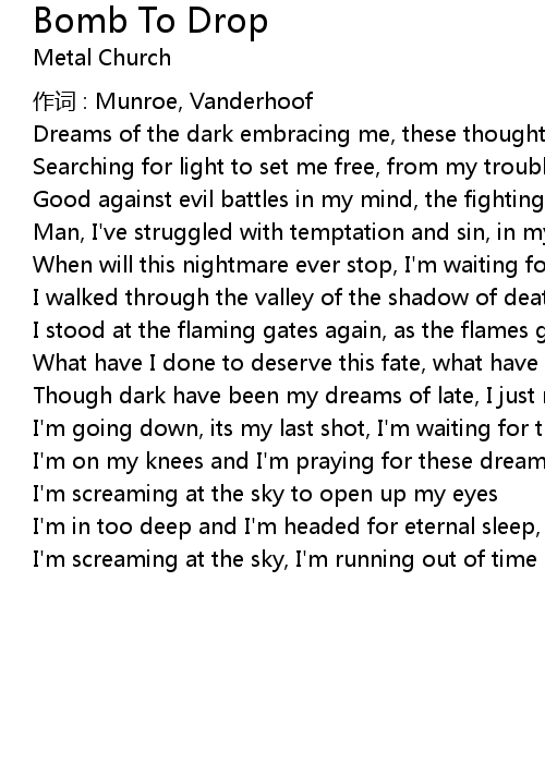 | When will this nightmare ever stop, I' m waiting for the bomb to drop | |