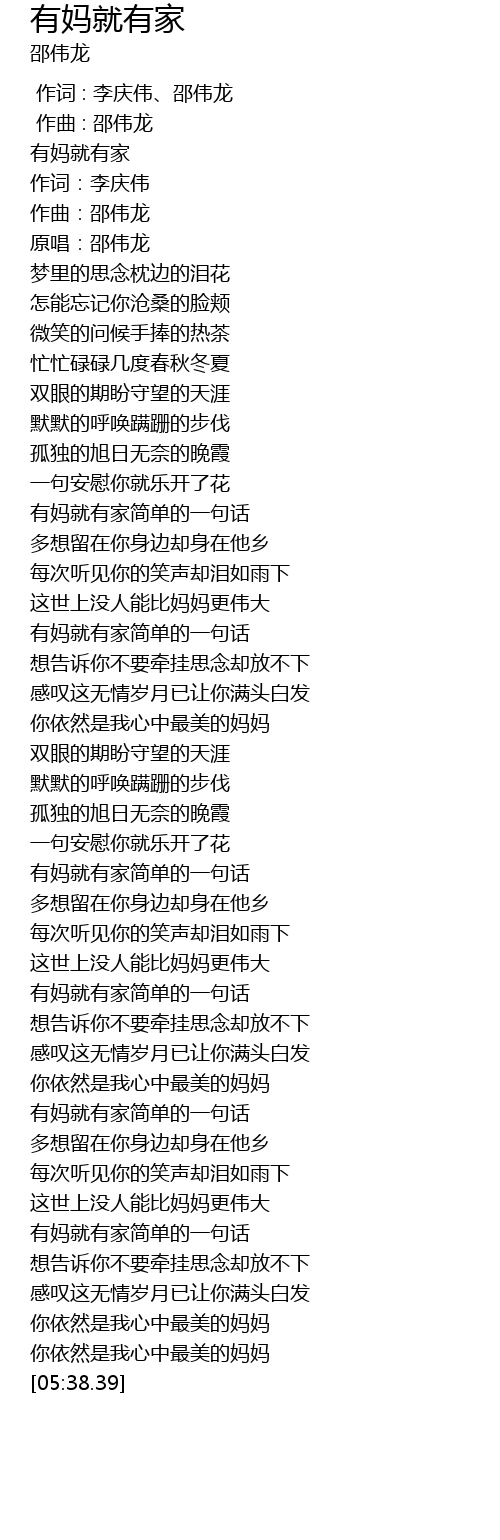| [04:58.37] | 有妈就有家简单的一句话 |