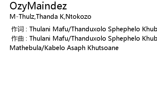 | [00:00.000] | 作词 : Thulani Mafu/Thanduxolo Sphephelo Khuboni |
