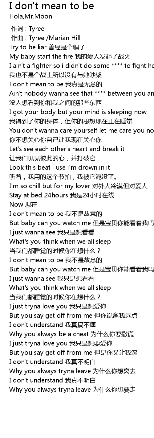 | Song | I don't mean to be |