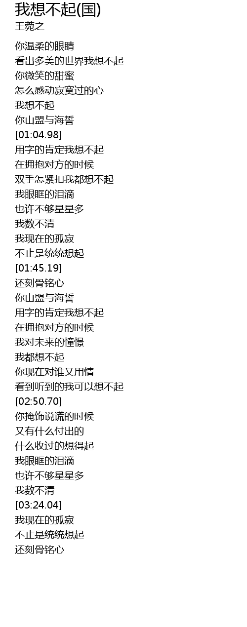 | [00:55.50] | wǒ xiǎng bù qǐ |