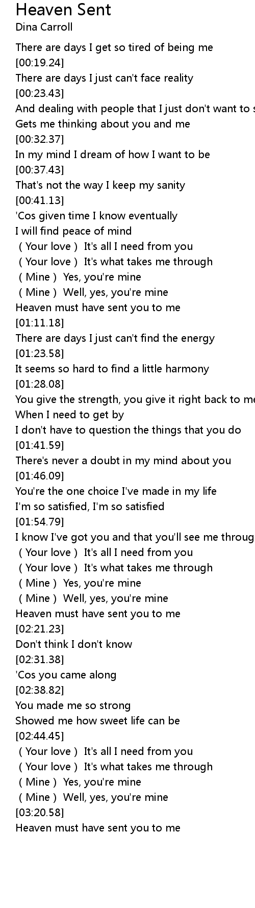 | [02:16.54] | Heaven must have sent you to me |