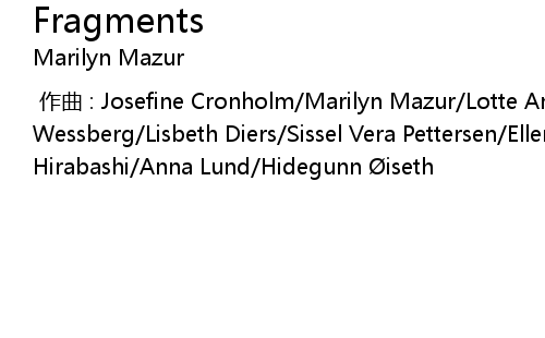 | [00:00.000] | zuo qu : Josefine Cronholm Marilyn Mazur Lotte Anker Lis Wessberg Lisbeth Diers Sissel Vera Pettersen Ellen Andrea Wang Mariko Hirabashi Anna Lund Hidegunn iseth |