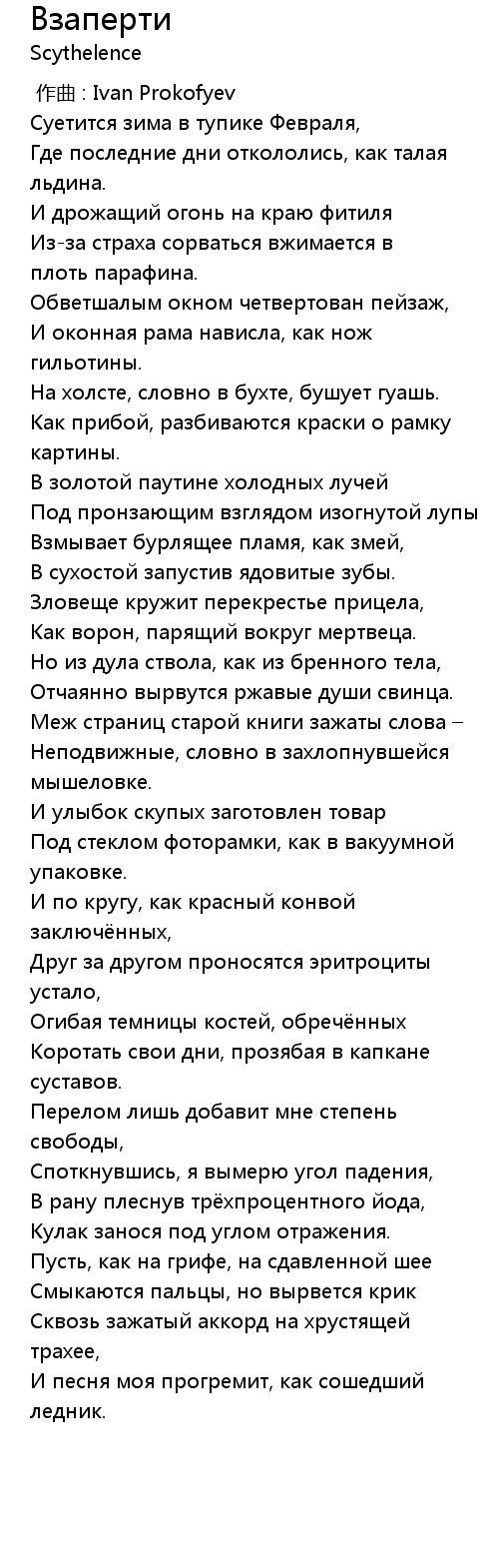 Взаперти  Lyrics
