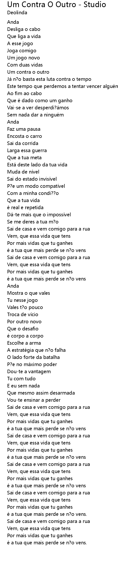 | Song | Um Contra O Outro - Studio |