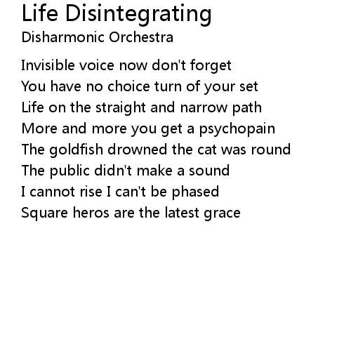| Song | Life Disintegrating |