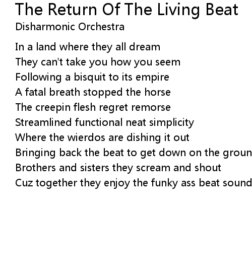 | Song | The Return Of The Living Beat |