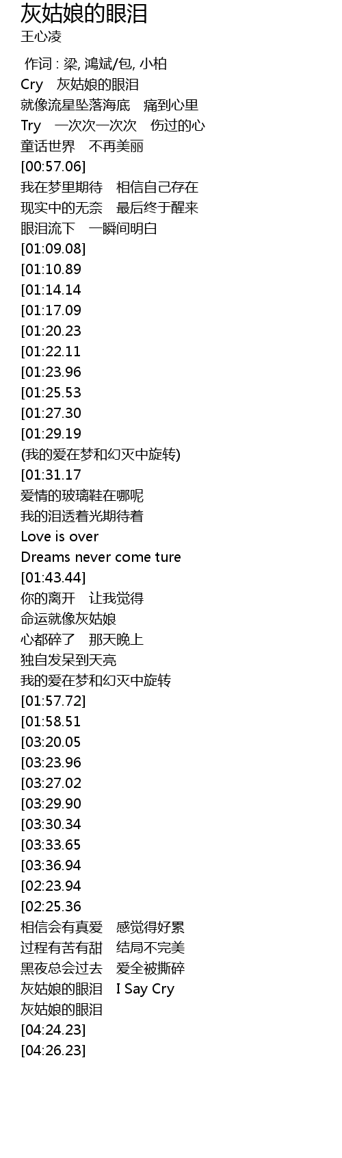 | [03:17.44][01:58.51] | Cry 灰姑娘的眼泪 |