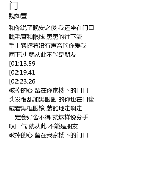 | [02:35.07] | 破掉的心 留在我家楼下的门口 |